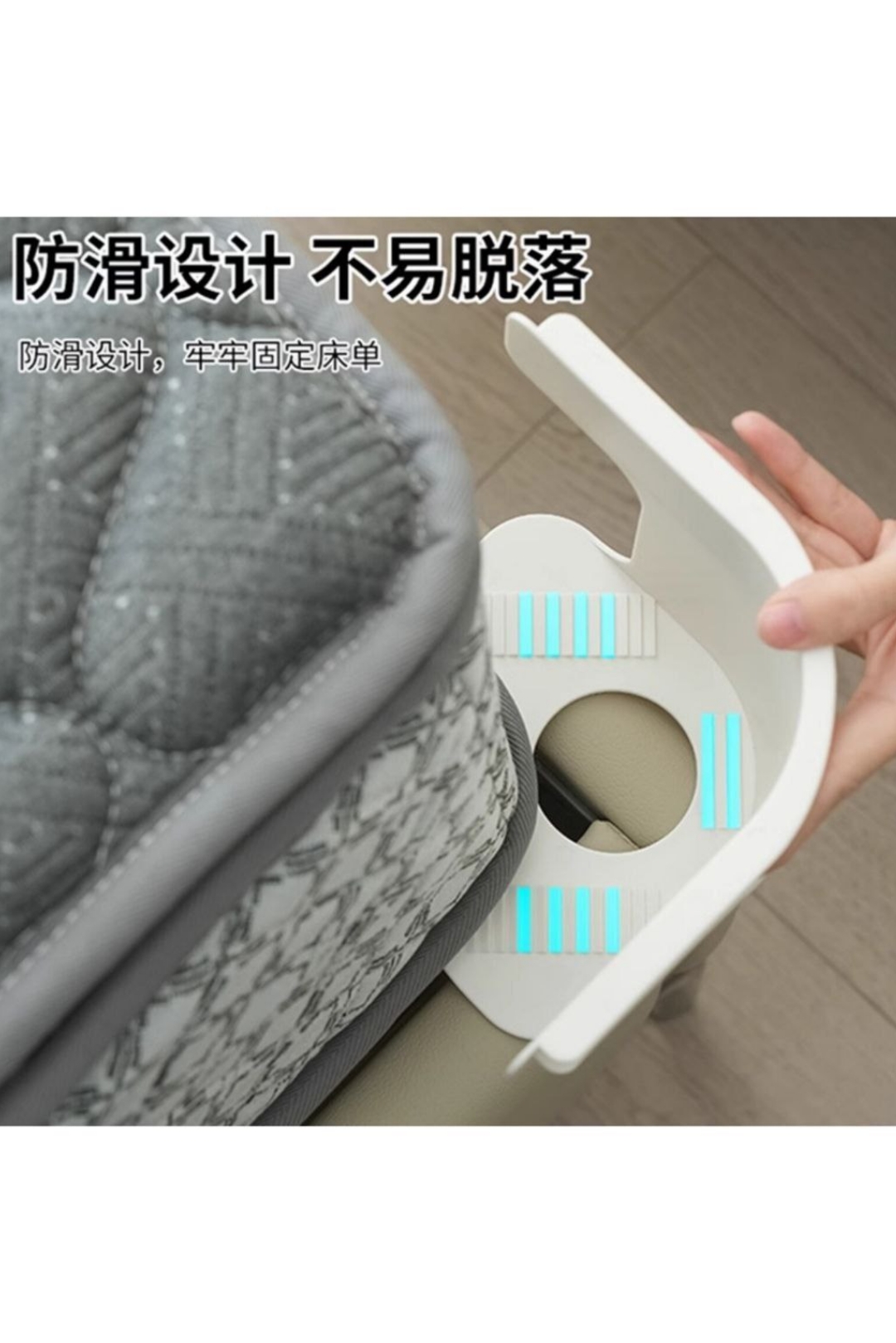۴ تا گیره محکم که ملحفه رو مثل کمربند نگه میدارن — دیگه جمع شدنش تمومه! 🙌
