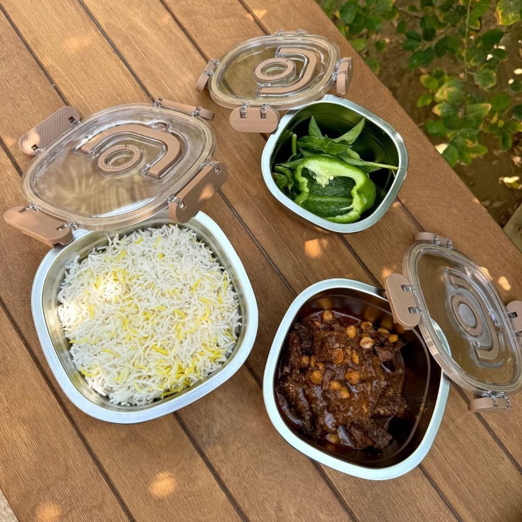 کاسه استیل 3 تکه درب دار قفلی🔒